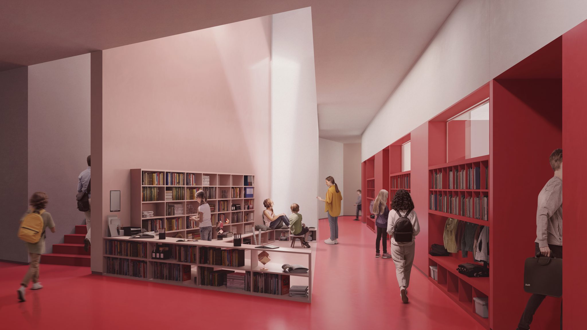 Molte aree della scuola sono caratterizzate dalla flessibilità d’uso. L’atrio, con i suoi arredi mobili, può trasformarsi da isola per la lettura a spazio di apprendimento, fino ad ospitare piccoli spettacoli tramite l’unione con la zona mensa. I connettivi sono naturale prosecuzione delle aule e accolgono ulteriori spazi per l’apprendimento e la socialità.